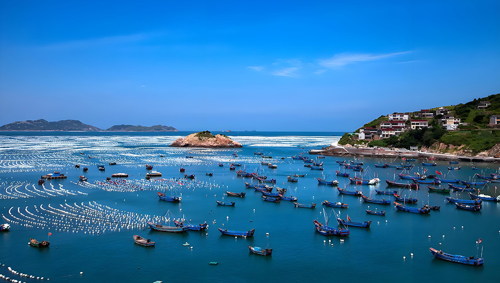 This thousand-year-old fishing village in Lianjiang County offers breathtaking "mountain-and-sea" vistas. From Qiguan Peak, a 180-degree view reveals fish farms, lighthouses, and wind turbines resembling a "Venice on the Sea." In 2025, a new cliff-side glass walkway allows visitors to experience the power of crashing waves up close.